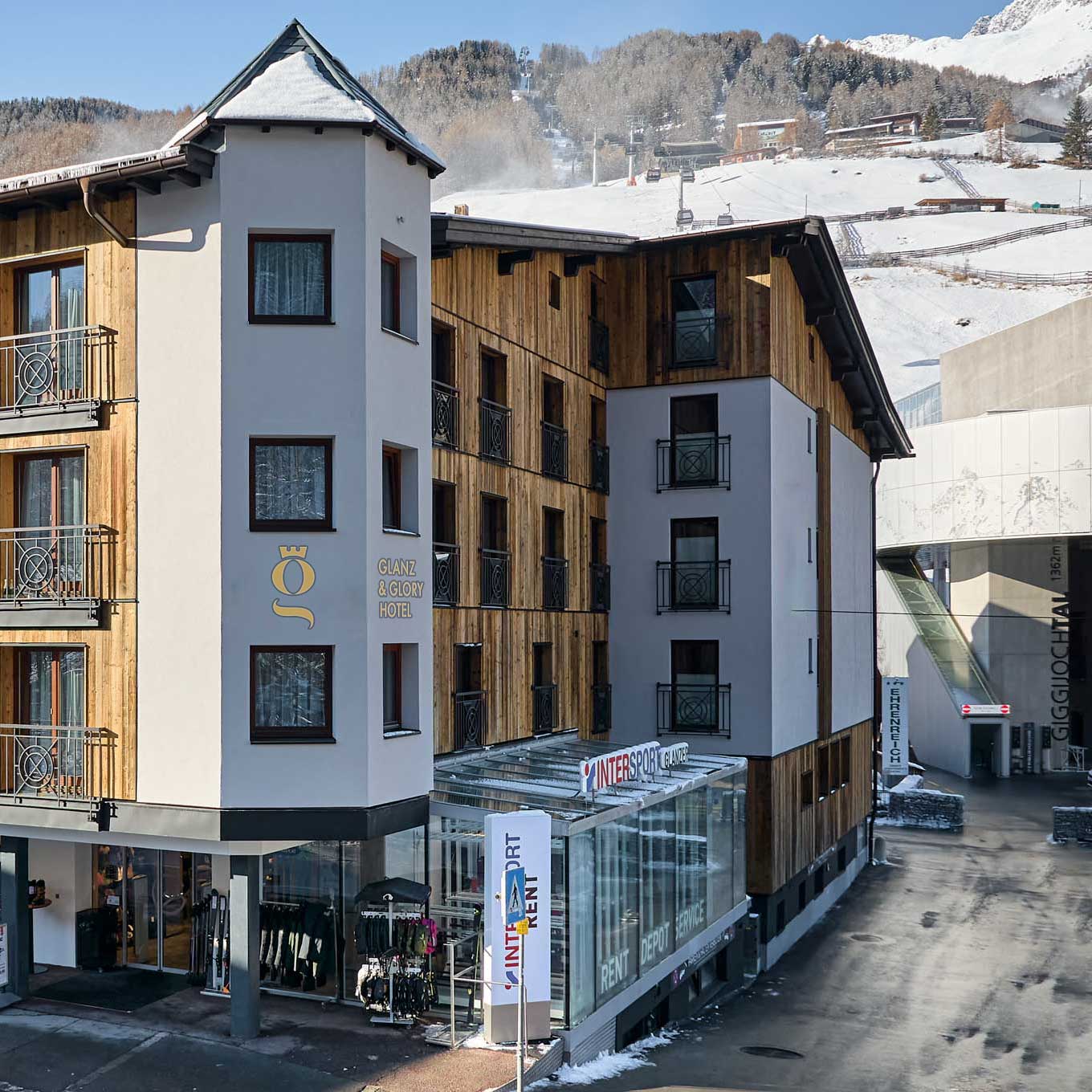 Ab November 2026 wohnst du im Glanz & Glory Hotel (****) in Sölden in Top-Lage: nur 30 Meter bis zur Giggijochbahn – direkt rein ins Skigebiet. Kein Umweg, mehr Zeit auf der Piste. Nach deinem Skitag entspannst du im Wellnessbereich mit Sauna, Dampfbad und Whirlpool, bevor du mit einem Genießer-Frühstück in den nächsten Tag startest. Im Erdgeschoss befindet sich ein INTERSPORT Glanzer, der keine Sportlerwünsche offen lässt!