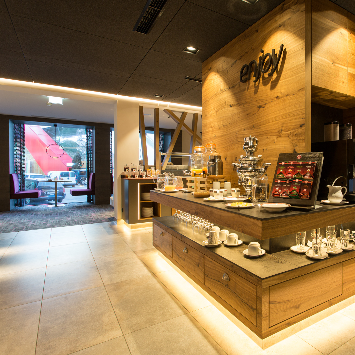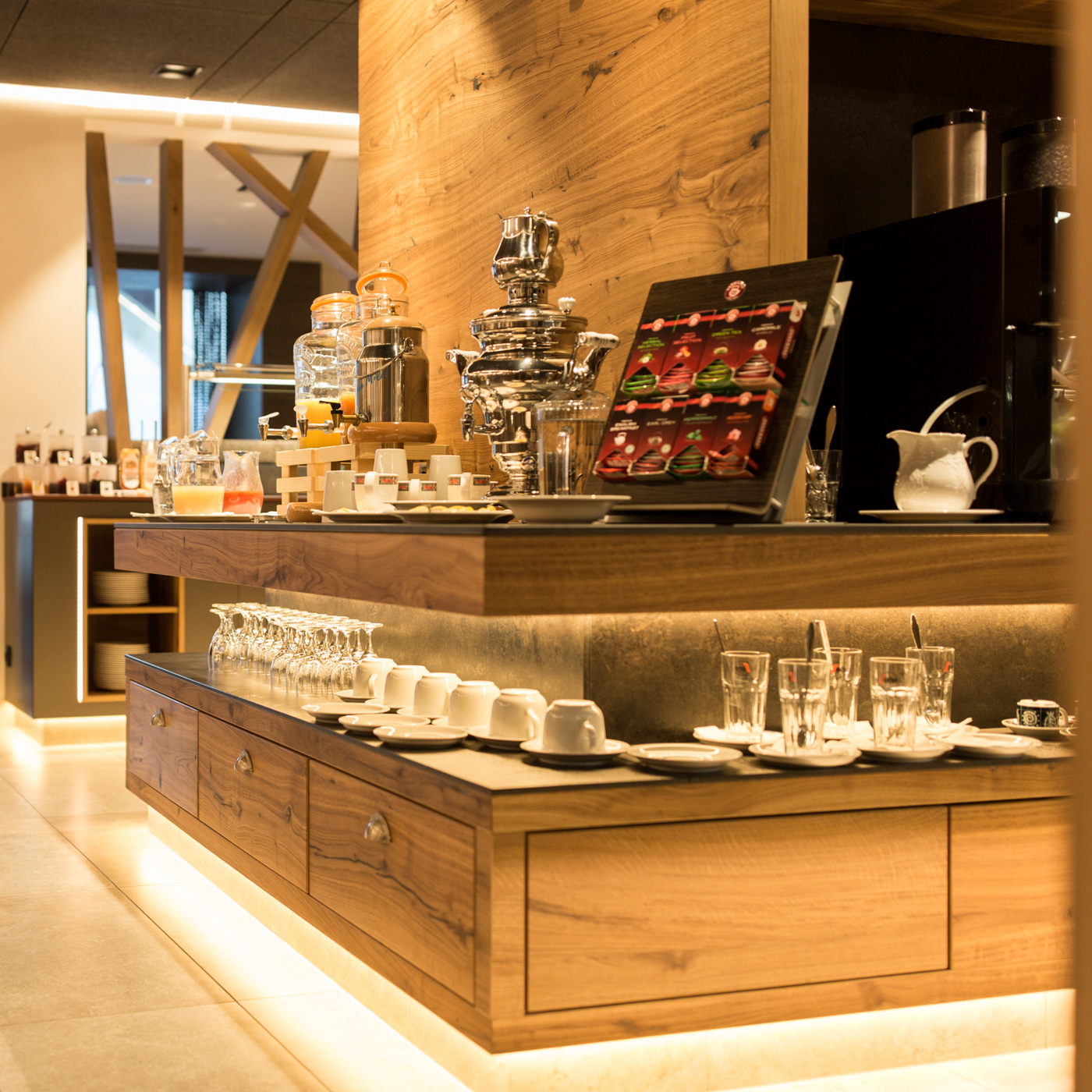 Freut euch auf frische, hochwertige Produkte aus der Region, Tiroler Brot und Gebäck vom heimischen Bäcker, Kaffeespezialitäten, verschiedene Tees und frische Säfte. Dazu gibt es Tiroler Schinken- und Wurstvariationen, verschiedene Käsesorten, Bio-Marmeladen, hausgemachte Müslis und Joghurts, frisch zubereitete Eierspeisen sowie frisches Obst und Gemüse. Auch glutenfreie und laktosefreie Produkte stehen für euch bereit.