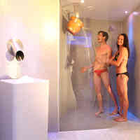 Tropenregen, Gewitterregen, Seitenbrause, Farblicht, Schwallbrause, Kübeldusche, Kneippschlauch und Eisbrunnen.